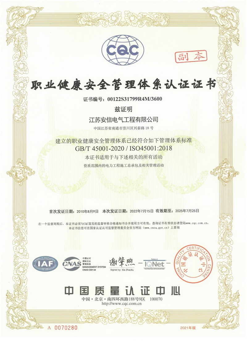 在創業之初,公司就堅持高起點的戰略思路,廣納賢才,集聚行業精英,創新發展,做優企業品牌。現已取得:承裝二級、承修二級、承試二級,電力工程施工總承包二級,輸變電工程專業承包二級,建筑工程施工總承包二級,建筑機電安裝專業承包二級,地基基礎專業承包二級資質證書,并通過了質量、環境、職業健康和安全管理體系認證,確保各項工作有序管控。